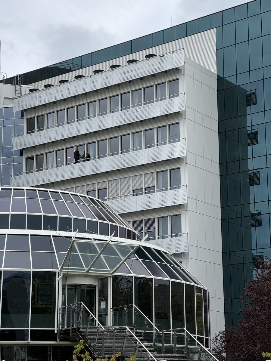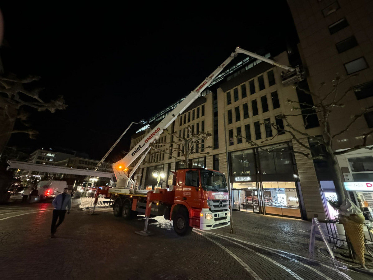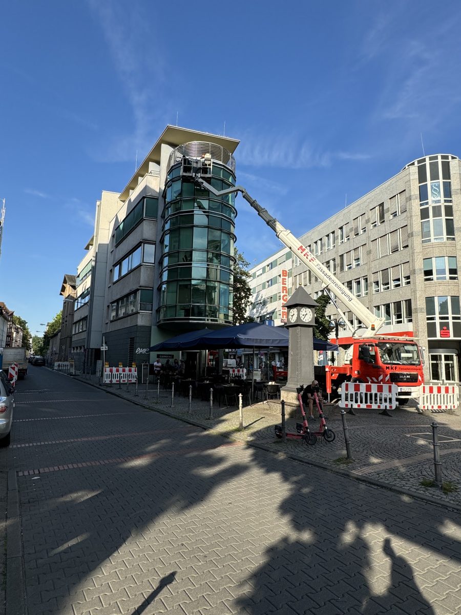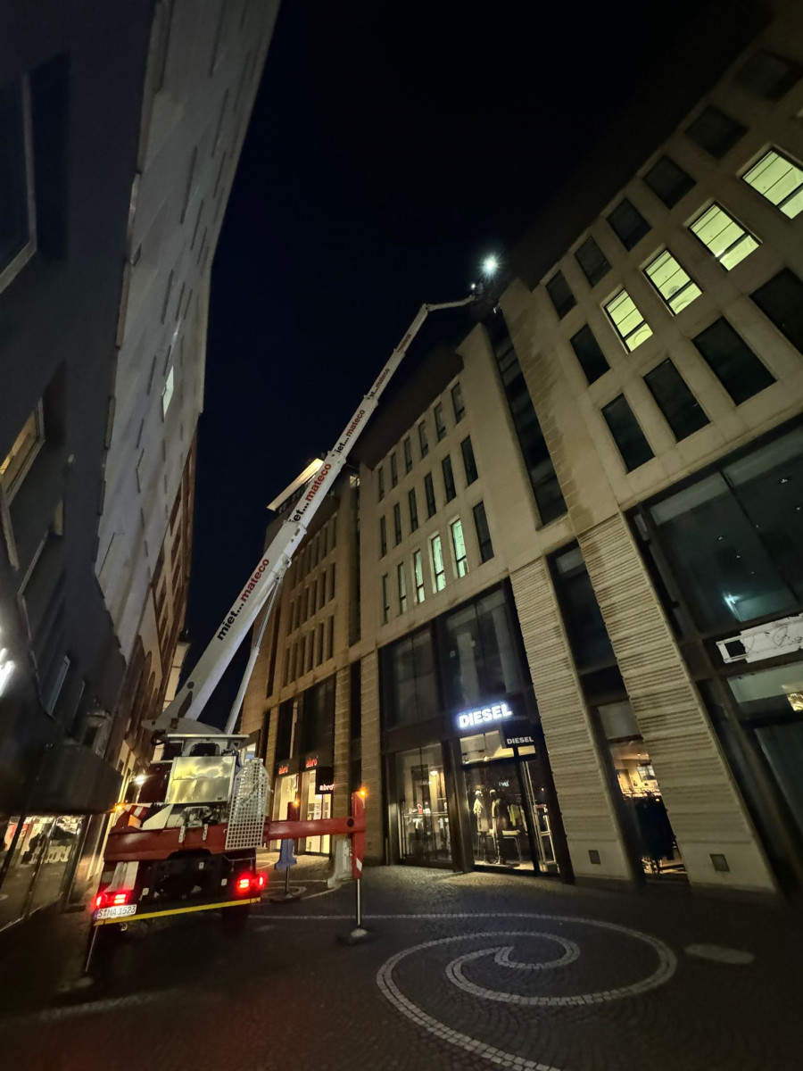 Glas- und Fassadenreinigung mit Befahranlage und Arbeitsbühne.