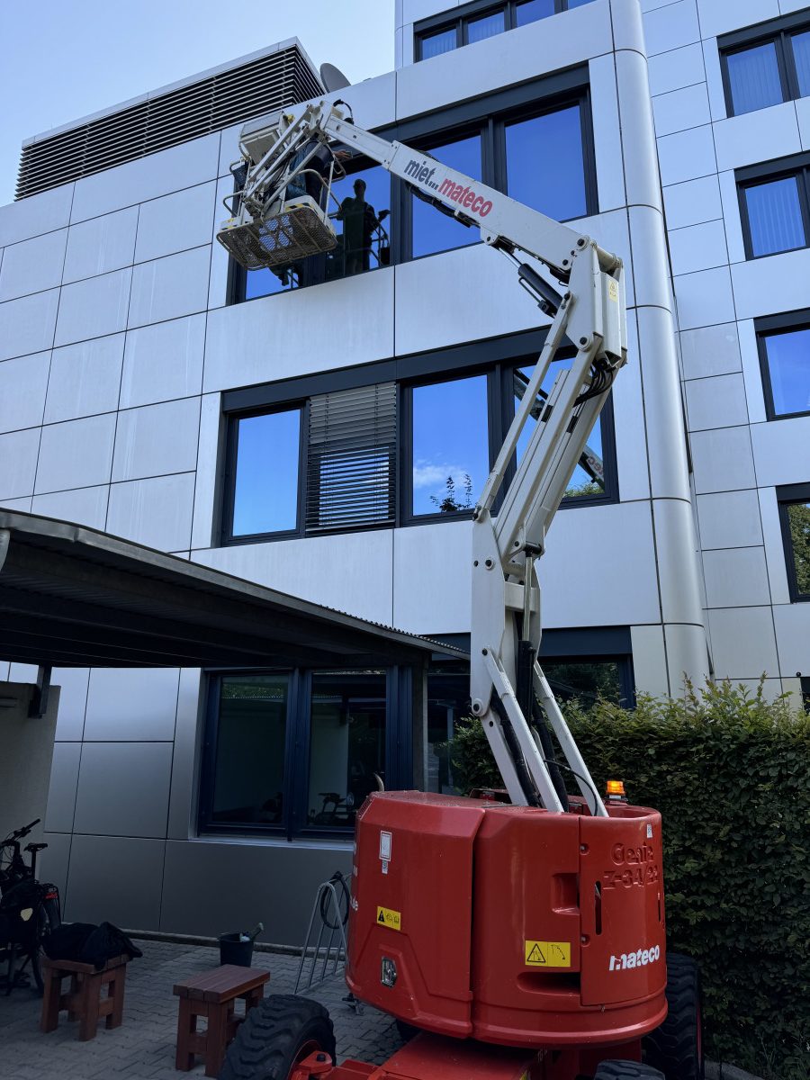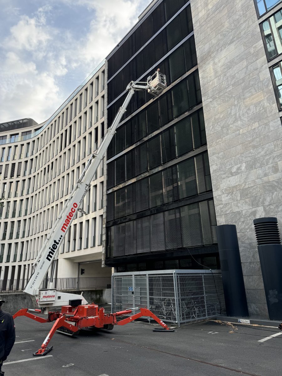Glas- und Jalousiereinigung mit mobiler Befahranlage und Arbeitsbühne