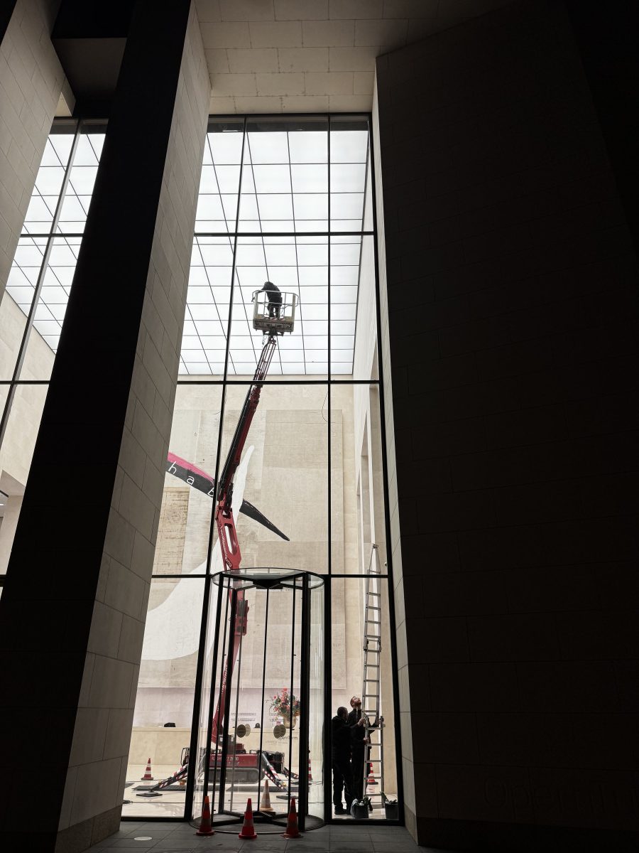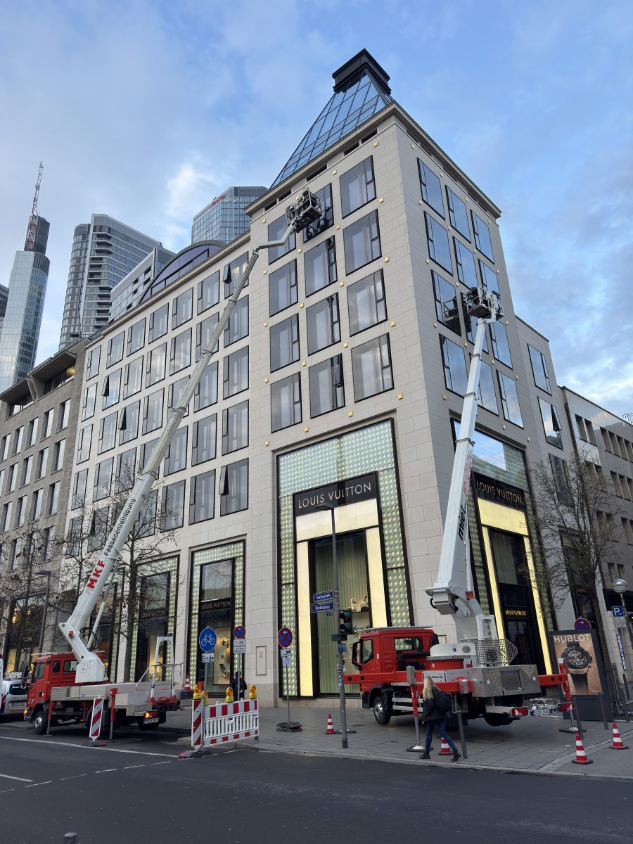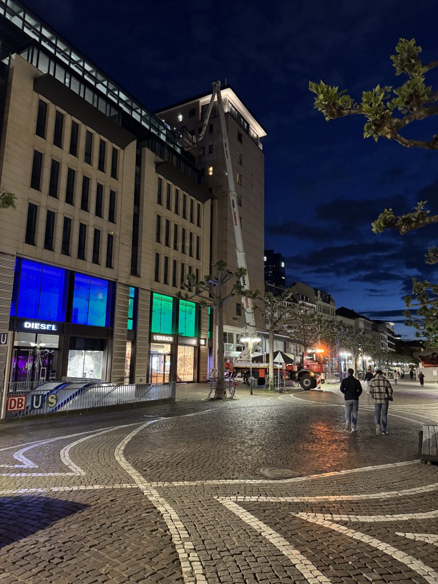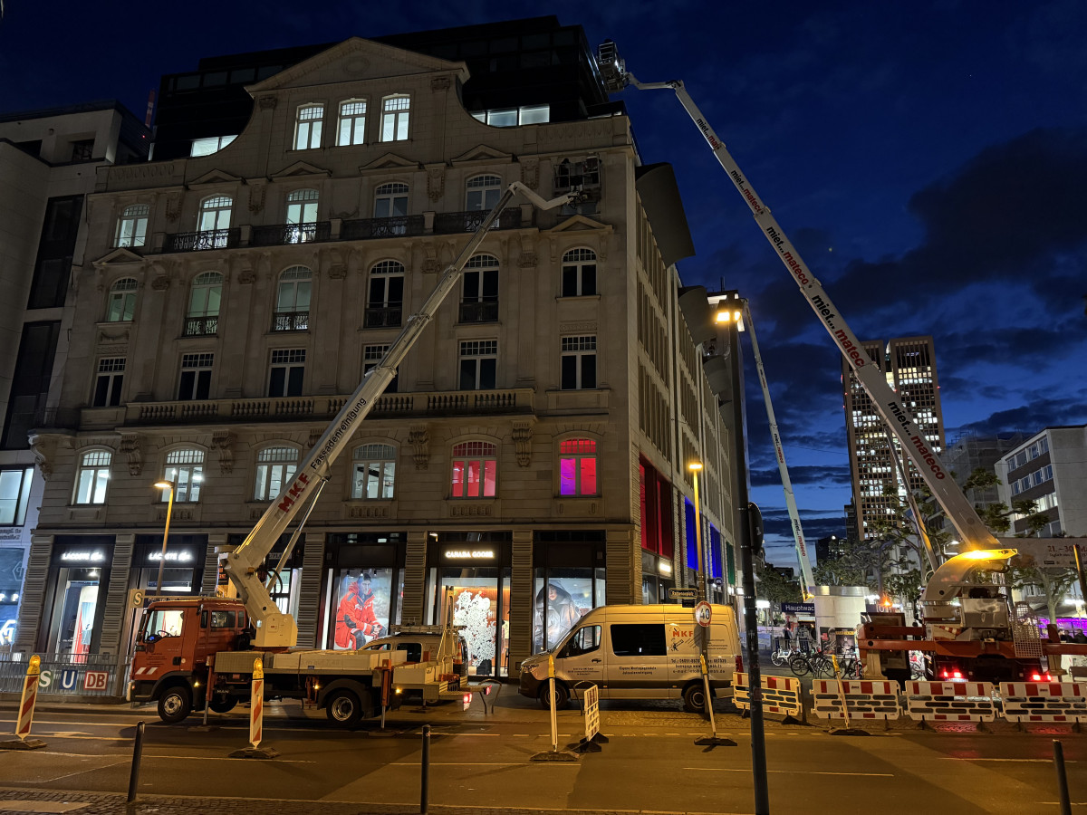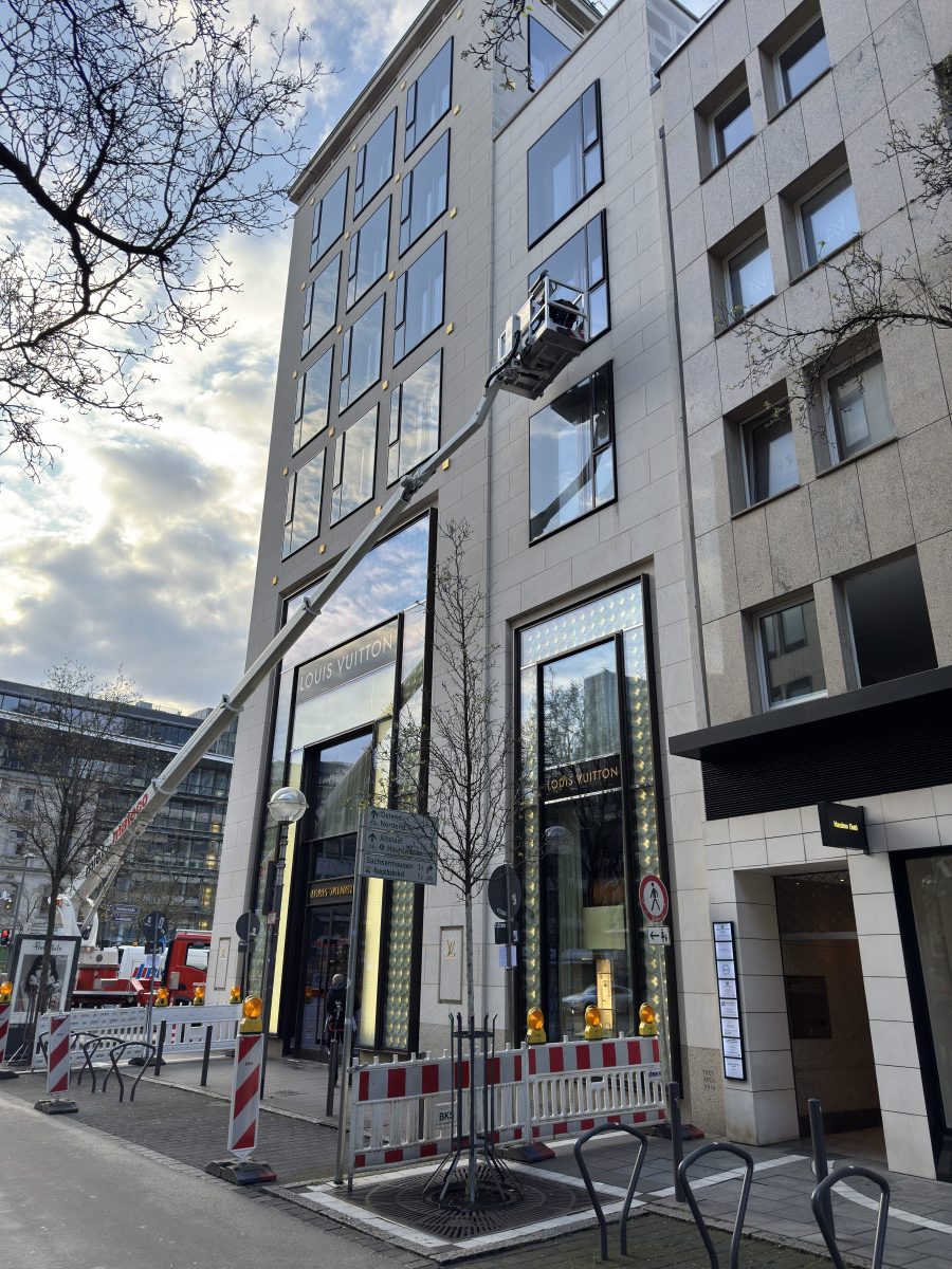 Glas- und Fassadenreinigung mit mehreren Arbeitsbühnen in Nachtarbeit