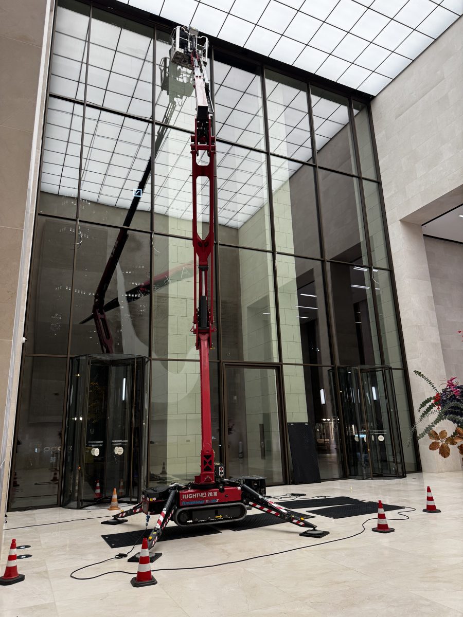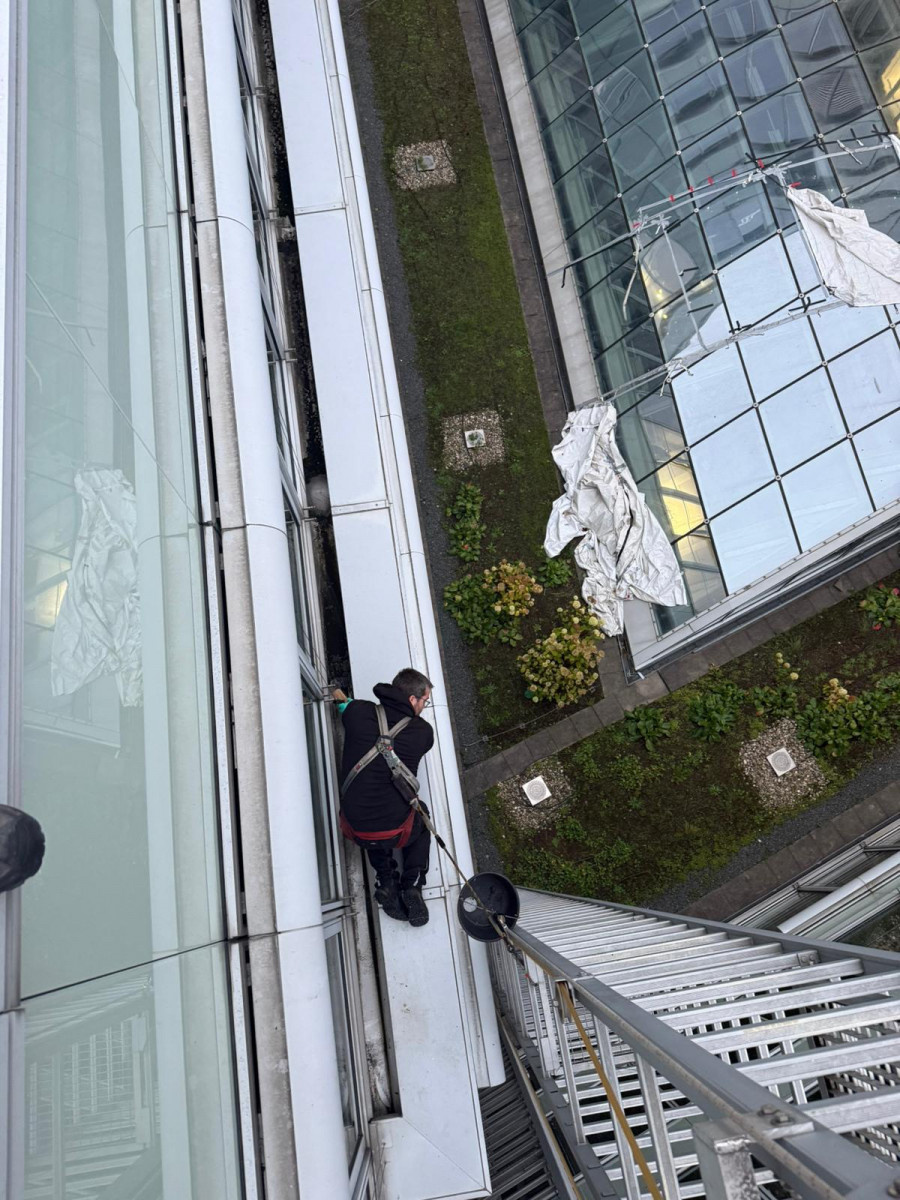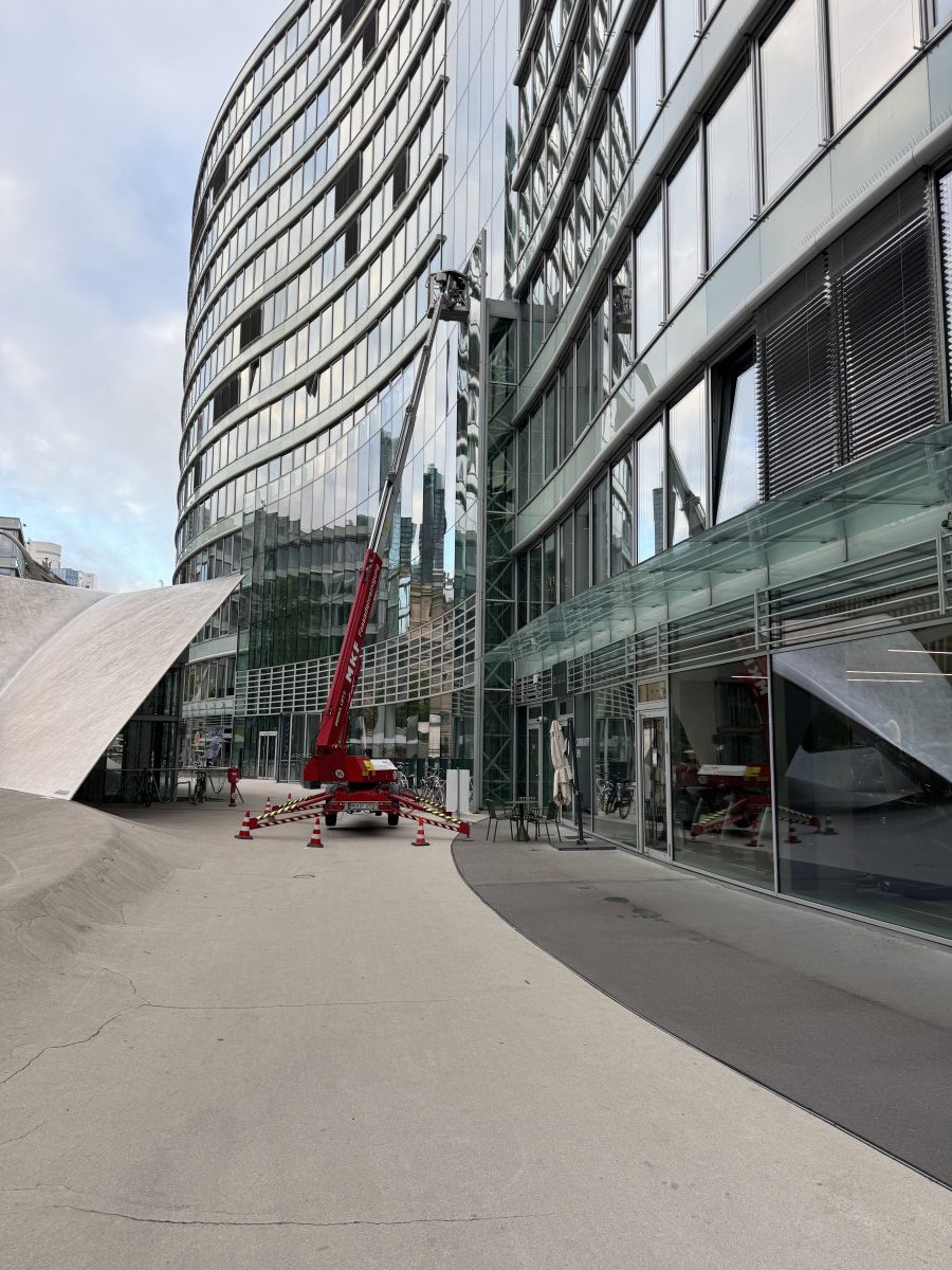 Glasreinigung mit Raupe