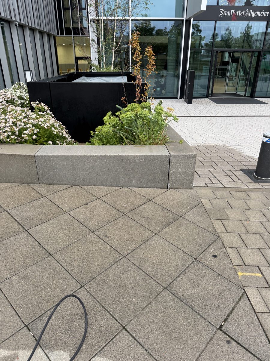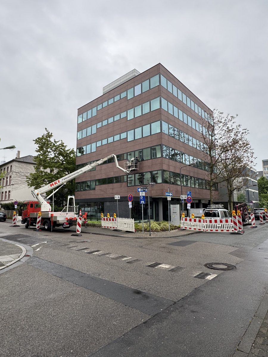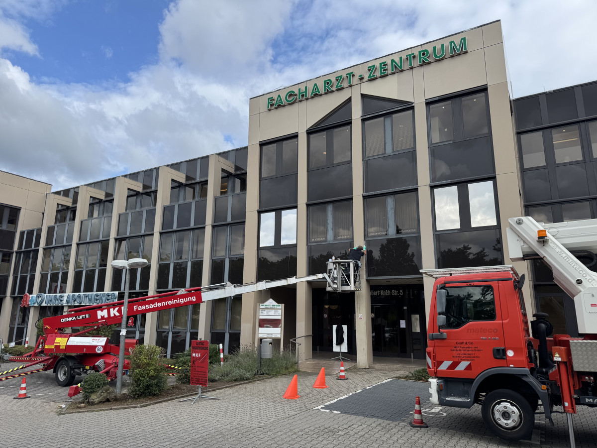 Fassadenreinigung mit heißem HD-Gerät, Jalousie- und Glasreinigung