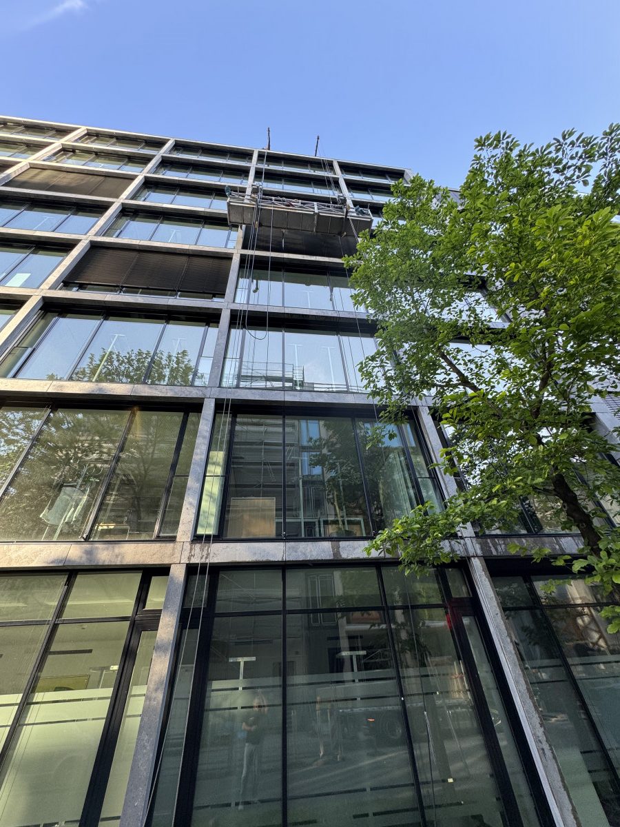 Glas- Jalousiereinigung mit mobiler Montagegondel